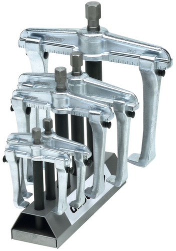 "longDescription": "Composé de 5 extracteurs de différentes tailles avec crochets d'extraction standard ou à serrage rapide ou crochets tout acier avec frein de crochet, échelle de réglage pour ajuster uniformément les crochets d'extraction. Permet un arrachage centré et optimisé en termes de force, même en cas de forces d'arrachage élevées. Pour des portées jusqu'à Ø 250 mm extérieur, Ø 330 mm intérieur, et des profondeurs de serrage jusqu'à 200 mm.<br>",