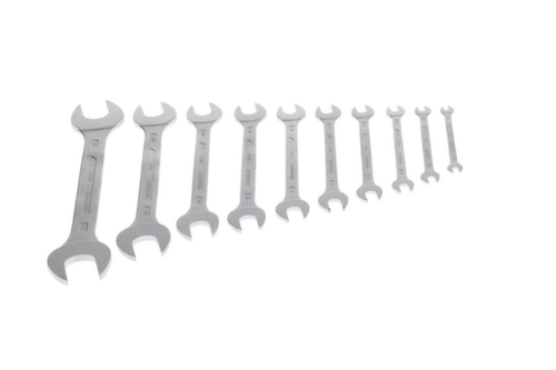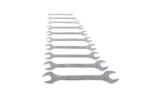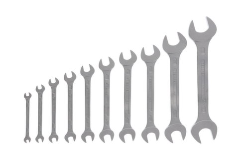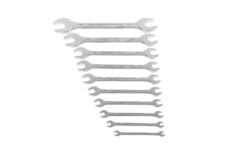 "longDescription": "Dimensions les plus courantes dans le set, Exécution selon DIN 3110, ISO 3318, ISO 1085, ISO 10102, Avec têtes plates, Surface mate anti-reflets, Mâchoires : rectifiées avec précision à la cote nominale exacte pour des surfaces de contact optimales, Prise en main sûre grâce à la tige profilée mince, La surcharge est indiquée par une déformation, Qualité industrielle haut de gamme pour une sollicitation dure et durable, Acier au chrome-vanadium 31CrV3, chromé<br>",