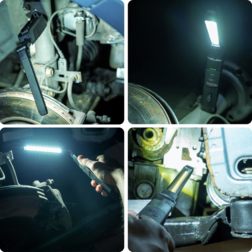 avec aimant au fond pour une fixation verticale et crochet dépliable, rotatif à 180°. durée d’éclairage 2 - 12 h (les indications « de/à » correspondent aux valeurs min. et max. de lumens). portée d'éclairage 7 - 22 m. Se plie pour un gain de place en cas de non utilisation. durée de charge 4 h. affichage avec indicateur du niveau de la pile/charge. avec batterie. Compatible avec lithium-ions. résistant à la température de -5 °C à +40 °C. indice de protection IP20 : corps étrangers > 12,5 mm, pas de protection des eaux.