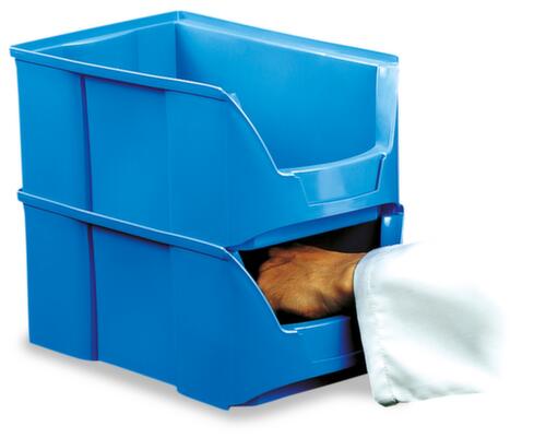 "title": "Bac à bec empilable Futura avec ouverture de prise profonde, bleu, profondeur 230 mm",