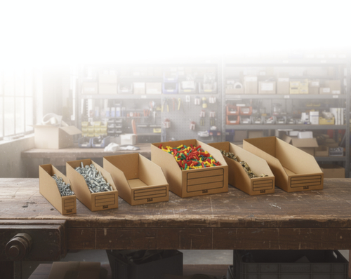 "longDescription": "<h2>Bac compartimentable en carton pliable</h2><strong>Stockage écologique et peu encombrant</strong><br><ul><li>Idéal pour le stockage de petites pièces non grasses</li><li>Boîte en carton à 1 paroi avec couverture extérieure solide en papier kraft</li><li><strong>Respectueux de l'environnement</strong> - fabriqué à partir de papier recyclé à au moins 75 %.</li><li>Rangement peu encombrant, se replie en un clin d'œil en cas de besoin.</li><li><strong>Vue directe sur l'intérieur et</strong> démontage facile grâce à une hauteur frontale plus faible </li></ul><strong>Achat uniquement en unités de conditionnement complètes (UC)</strong><br>",