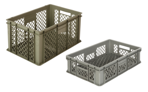 "longDescription": "<h2>Conteneurs gerbables Euronorm</h2><strong>idéal pour les verres ou les pièces de production</strong><br><ul><li>Respect de l'environnement et stabilité dimensionnelle - en polyéthylène résistant aux chocs.</li><li>Circulation optimale de l'air - parois et base perforées</li><li>Facile à transporter grâce aux poignées situées sur les côtés avant</li><li>Sécurité alimentaire et résistance à court terme à la température jusqu'à +90°.</li></ul><br><strong>Bon à savoir !</strong><br>Vous voulez un compartimentage du bac adapté à vos besoins ? Commandez directement les séparateurs à cases fixes assortis. Ceux-ci sont disponibles au choix pour le haut ou pour le bas. Prière de préciser lors de la commande.<br>",