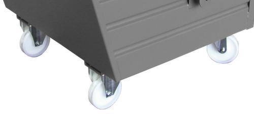 "longDescription": "<h2>Jeu de roulettes</h2><ul><li>2 roulettes pivotantes et 2 roulettes fixes Ø 180 mm en polyamide</li><li>1 roulette pivotante avec frein</li></ul>",