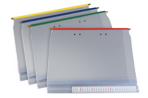 "longDescription": "<h2>Chemise porte-documents</h2><strong>exécution à 3 couvertures</strong><br><ul><li><strong>Rangement suspendu</strong> - le classeur se suspend dans les systèmes de rangement grâce à la suspension en laiton</li><li><strong>Équipement de qualité</strong> - avec couverture centrale robuste, barre d'onglets pour recevoir une bande signalisation, fiche de rendez-vous et baguette de serrage</li></ul>",