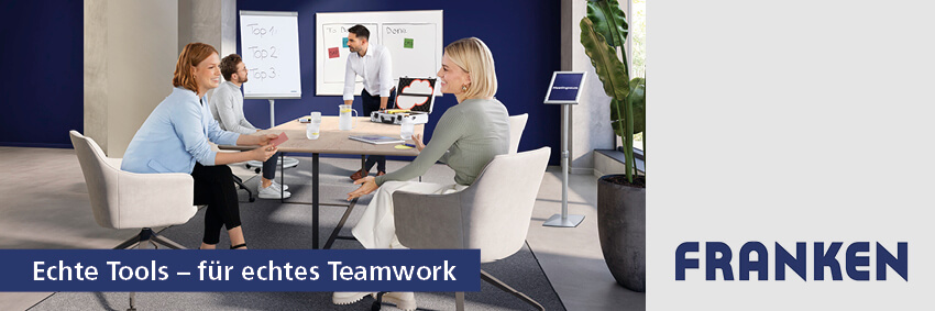 Franken chevalet de conférence mobile PRO Deluxe Mobil avec 2 porte-papiers, hauteur 1820 - 2000 mm