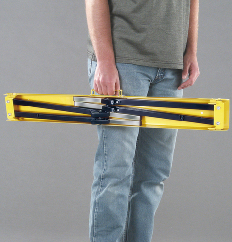 caractéristiques :réglage en hauteur séparé des pieds. surface d'appui antidérapant et préservant le matériau, largeur 970 mm. manutention facile avec poignée de transport intégrée. Se plie pour un gain de place en cas de non utilisation. Tréteau de chantier à hauteur réglable avec revêtement en plastique résistant à l’usure en noir/jaune.