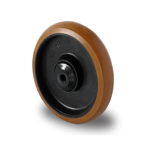 "description": "force 200kg, Ø 100mm, moyeu L 40mm, bandage PU, roulement à billes, jante polyamide, pare-fils",