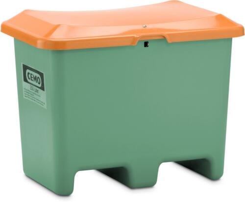 "description": "2200l, HxlxP 1240x2130x1520mm, plastique renforcé de fibre de verre, vert, couvercle orange, parois fermé",