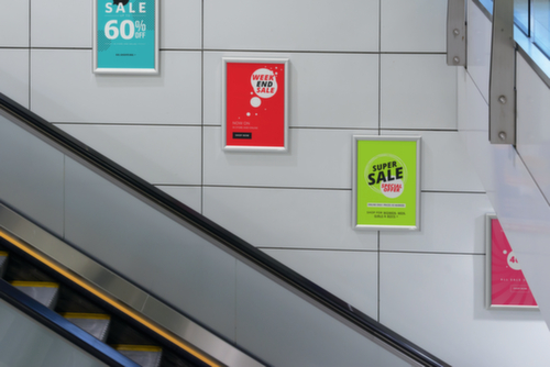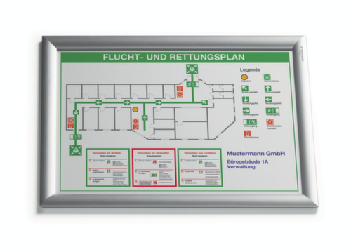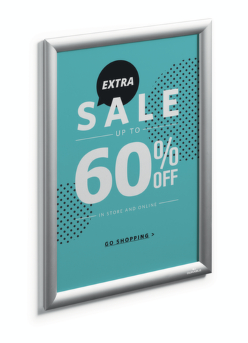 cadre en aluminium anodisé en argent. Coins coupés en onglet. face avant en film de protection UV. paroi arrière en polystyrène résistant aux chocs. face arrière avec bandes autocollantes. volume de livraison : matériel de montage inclus.