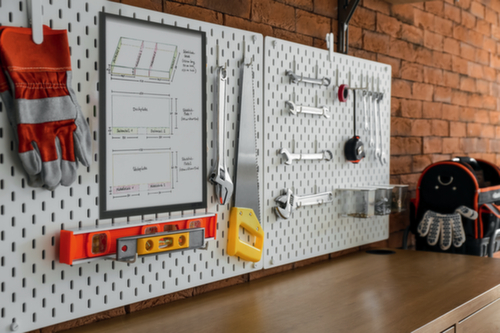 cadre en Polypropylène en anthracite/gris. face avant en film plastique. face arrière magnétique. cadre avec 3 rubans magnétiques pour un bon maintien des documents.