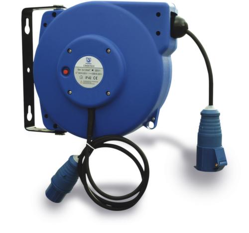 "longDescription": "<h2>Enrouleur de câble</h2><strong>pour une plus longue durée de vie des câbles</strong><br><ul><li>Minimise le risque de trébuchement grâce à l'enrouleur de câble automatique</li><li>Grand rayon d'action - pivotement de 180°.</li><li>Robuste et insensible - boîtier entièrement fermé en plastique haute résistance </li><li>Equipé - y compris un câble entièrement isolé et résistant aux chocs avec une gaine en plastique</li><li>Prêt pour une utilisation immédiate - y compris le support de montage pour une fixation au mur ou au plafond</li></ul>",