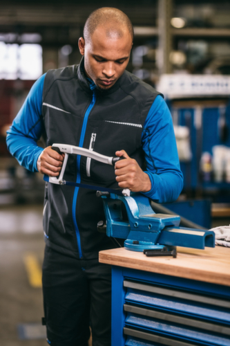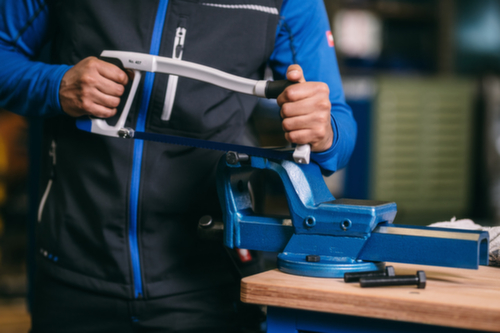 "longDescription": "Pour le tronçonnage des métaux et de l'acier, Scie à métaux polyvalente et robuste avec possibilité de réglage, Pour répondre au mieux à l'utilisation respective, la lame de scie peut être utilisée aussi bien verticalement qu'inclinée à 40°, Utilisation pratique, Fonction de serrage sans outil de la lame de scie grâce à l'élément de serrage bleu dans la poignée, Des goupilles de serrage imperdables fixent la lame de scie, Un travail ergonomique et une longue durée de vie sont garantis par la combinaison de l'étrier léger en aluminium et d'une poignée souple et coudée, Lame de scie bimétal 407 A<br>",