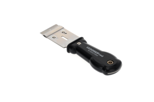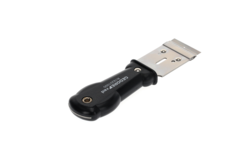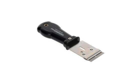 "longDescription": "Pour l'enlèvement rapide et sûr de plaquettes, de joints et de restes d'adhésif, Avec logement de lame stable, Lames remplaçables, Capuchon de sécurité, Poignée à 1 composant avec trou de suspension<br>",