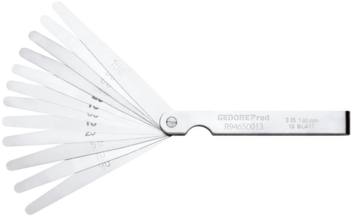 "longDescription": "Avec poignée de protection, repliable, Pour le contrôle d'espaces intermédiaires, de distances de contact, etc., Lames coniques, En acier à ressort trempé, Étiquetées individuellement avec indication de la taille<br>",