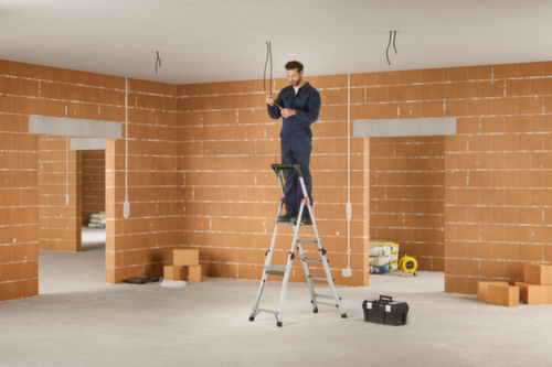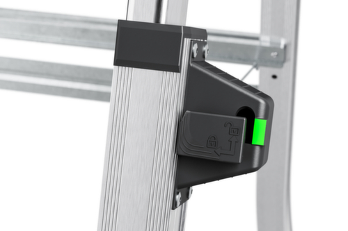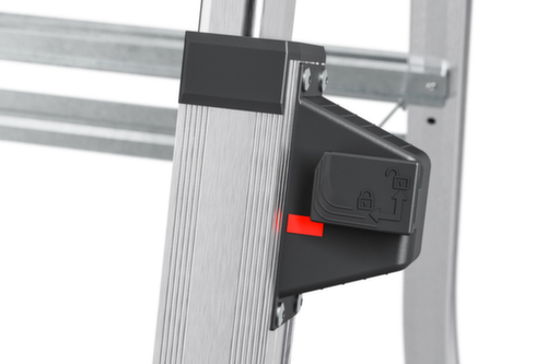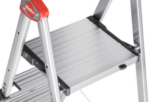 Les principales dimensions de Hailo l’échelle TopLine TL100 en un coup d’œil :Rabattu hauteur x profondeur 1430 x 140 mm. application sûre grâce à système de verrouillage de sécurité des éléments télescopiques avec indicateur couleur « Lock/Unlock ». équipé de bac avec emplacements pour pots (de peinture) de différentes tailles. bac en plastique. pieds plastiques antidérapants en extrémité de lisse. En aluminium, lisses anodisé. Ce système permet d’éviter de se salir les mains. En même temps, la surface anodisée permet un nettoyage facile. Charge max. 150 kg. Dimensions à l'état posé : hauteur x largeur x profondeur 1730 x 520 x 1010 mm. poids 8,8 kg.