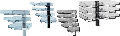 "description": "rotative à 360°, avec max. 6 plateaux, Plateaux transparents, Pied en différents coloris",