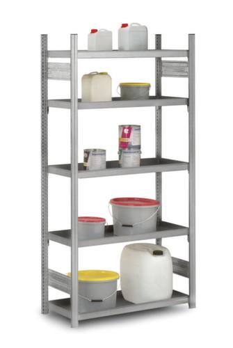 "description": "p. rayonnage à tablettes de rétention, lxP 1000x500mm, charge max. par tabl. 200kg, de rebord/pli, galvanisé",