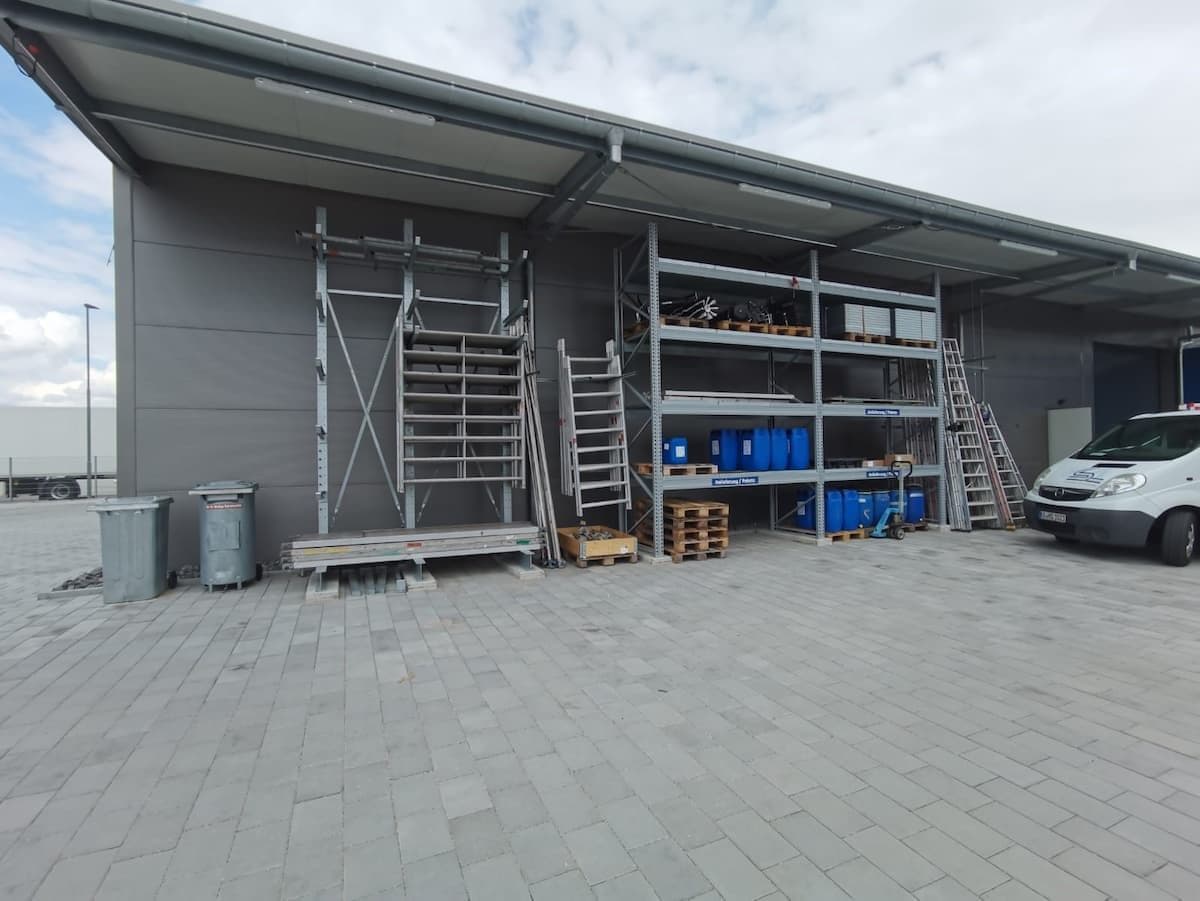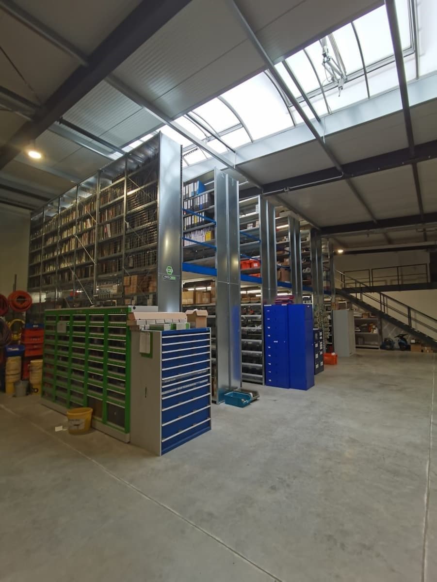 Livraison, installation et mise en service : Choix du fabricant : rayonnage META. Des rayonnages à double étage pour les accessoires de chauffage, des rayonnages cantilever pour les tuyaux de chauffage et des rayonnages à palettes pour les radiateurs complets.