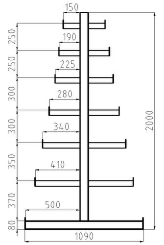 "description": "rayonnage départ, HxlxP 2000x5400x1090mm, 5montants, bilatéral, 7niveaux, montants RAL5010",