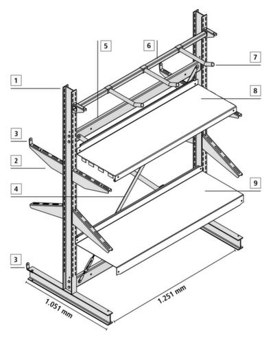 "description": "p. rayonnage cantilever, HxP 2500x1840mm, force 2700kg/montant, bilatéral",
