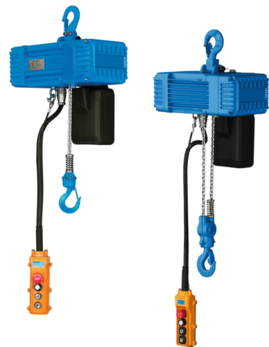"longDescription": "<h2>Palan électrique à chaîne</h2><strong>facile à transporter grâce à son design léger et compact</strong><br><ul><li>Positionnement précis grâce au démarrage progressif</li><li>Protection contre les surcharges grâce à un embrayage à glissement</li><li>Interrupteur de fin de course pour la position de fin de crochet supérieur et inférieur</li><li>Fourni avec un bac à chaîne pour une levée standard de 3 m et une valise de transport, HxLxP 200x390x470 mm</li></ul>",