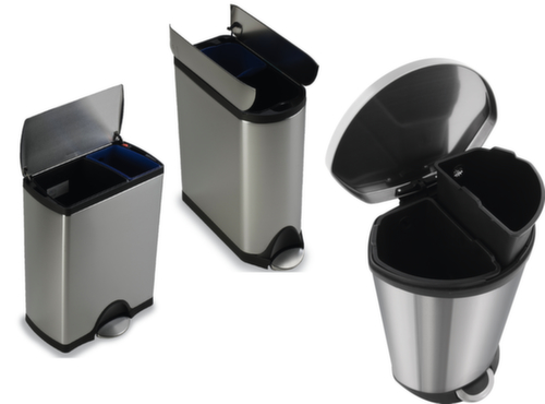 "metaDescription": "Poubelle à pédale acier inoxydable avec 2 unités collectrices - en différentes exécutions",
