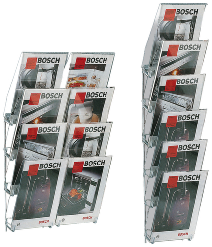 "longDescription": "<h2>Porte-brochures mural</h2><strong>peu encombrant grâce à la fixation murale</strong><br><ul><li><strong>Extensible à l'infini</strong></li><li><strong>Lisibilité optimale et protection en un</strong> - casiers porte-brochures en verre acrylique</li><li><strong>Robuste</strong> - piètement en fil d'acier</li></ul>",
