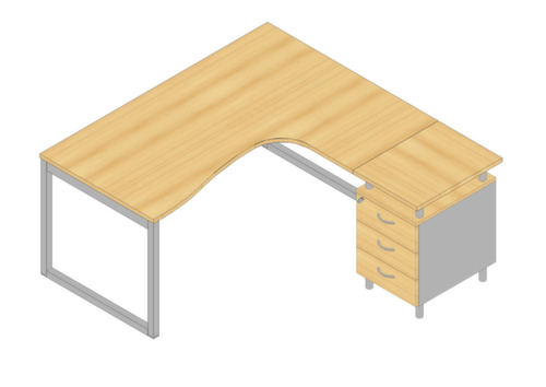 "description": "1 bureau, 1 caisson à poser, table HxlxP 730x1600x1650mm, Piètem. semelles blanc, suivant à gauche, gris",