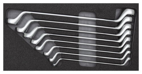 "longDescription": "Version selon DIN 838, ISO 3318, ISO 1085, ISO 10104, coudée à 5°, Avec bagues à parois minces, Acier au chrome-vanadium, Surface chromée satinée mate, En module de mousse<br>",