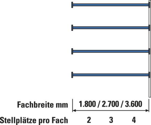 "description": "départ+suivant, charge max./tabl. 3000kg, par élément 4xtraverses, p. 30 palettes, entreposage longitudinal, force/palette 1000kg, montants galvanisé, traverses RAL5010",