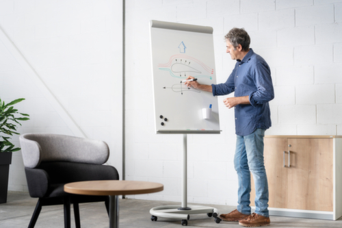 Avec cet outil de présentation analogique, vous pouvez travailler sans courant, sans Internet et indépendamment de toute autre forme de technologie. Lors de présentations ou de réunions, notez rapidement toutes les idées – cela vous permet de faire participer activement votre public.