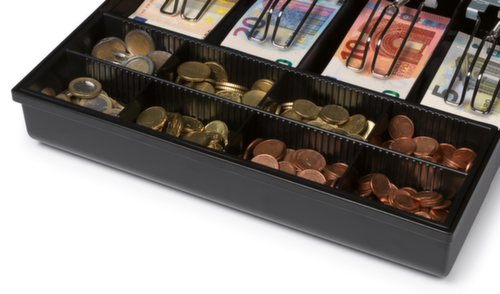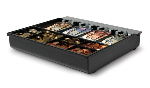 "description": "5compart. à billets/8monnaie, HxLxl 64x410x350mm, plastique/métal",