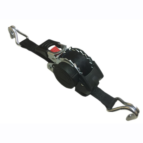 conseils d’utilisation : Accrocher le crochet en S de l’extrémité fixe à un endroit approprié. Tirer la sangle et la placer autour de la charge, l’accrocher et la tendre à l’aide du levier à cliquet. Pour la libérer, il suffit d’appuyer sur un bouton et la sangle se rembobine automatiquement.