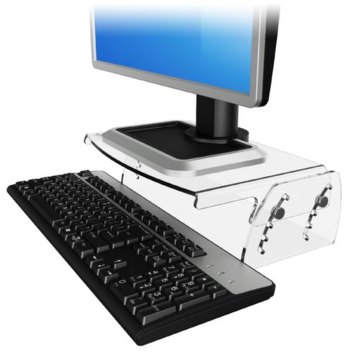 "longDescription": "<h2>Support pour écran LCD</h2><ul><li>Solution ergonomique et raisonnable</li><li>Convient pour les écrans LCD</li><li>En verre acrylique de 5 mm d'épaisseur</li><li>Hauteur réglable à 5 niveaux de 15 mm, de 70 à 130 mm</li><li>Peu encombrant</li><li>Force max. 15 kg</li></ul>",