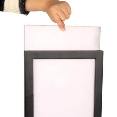 "description": "p. potelet à sangle, panneau Hxl 500x260mm, DIN A4, métal, noir",