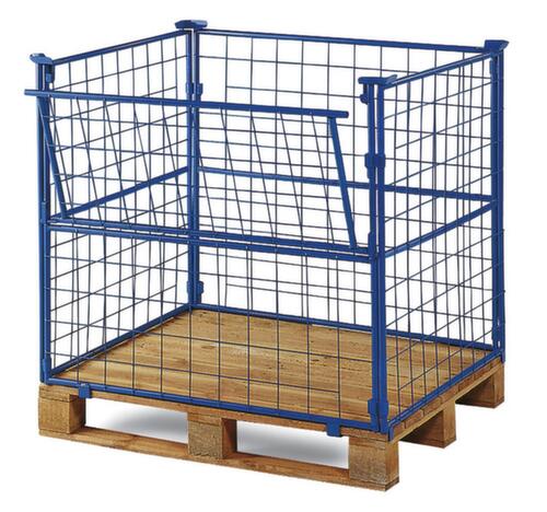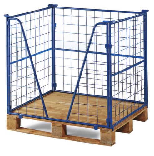 "description": "paroi treillis, un côté ouvert, capacité de gerbage 750kg, HxLxl 1200x1200x1000mm, p. palette Lxl 1200x1000mm, H utile 1200mm, RAL 5012",