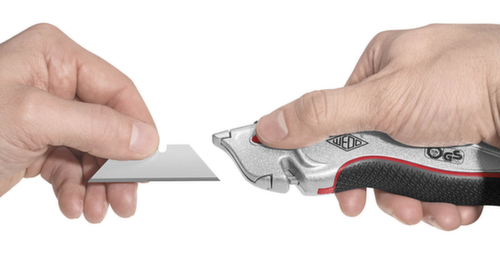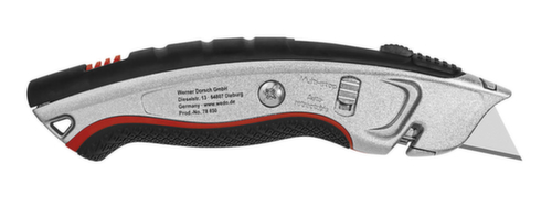 "longDescription": "<h2>Safety Cutter</h2><strong>avec rétractation de lame automatique</strong><br><ul><li>Convient pour droitiers et gauchers</li><li>Poignée en métal ergonomique antidérapante</li><li>Lame montée sur ressort avec rétractation de lame automatique dès qu'elle n'est plus en contact avec l'objet à couper</li><li>Passage de la rétractation de lame automatique à un encliquetage automatique Multi-Stop</li><li>Sortie de lame jusqu'à 25 mm</li><li>Changement de lame facile sans outils</li><li>Avec chargeur de lames de rechange intégré et coupe-cordes</li></ul><br><h3>Livraison :</h3><ul><li>5 lames de rechange trapézoïdales incl.</li></ul><br>Label de contrôle / Contrôlé conformément à :<br>Label GS - Certification TÜV<br>",