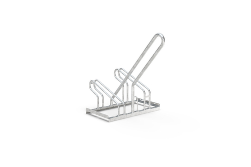 utilisation à un côté. structure en acier (vissé) galvanisé à chaud. structure en acier en tube rond/plat. avec étrier de réglage très haut adapté non seulement aux cycles de grande taille, mais aussi au verrouillage ergonomique sans se baisser et sans mettre sa santé en jeu. montants conçu pour un montage en série. À poser librement au sol, s'offre comme solution de montage complètement libre.